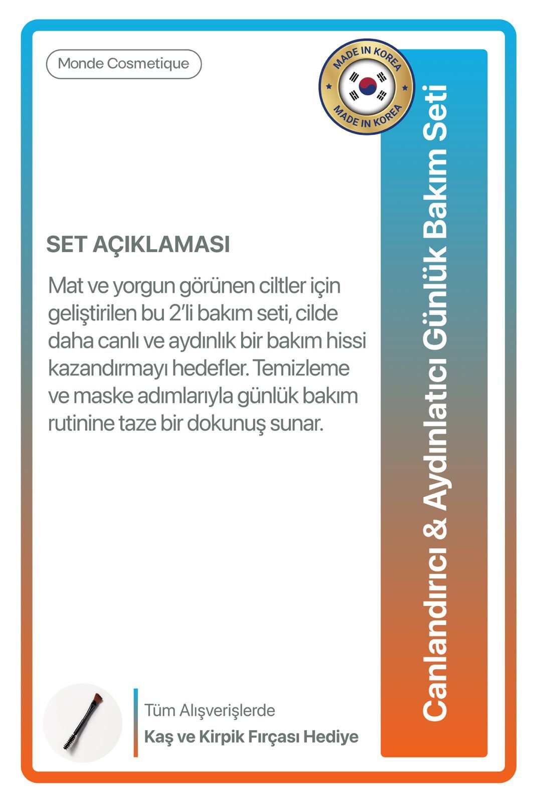 Mat ve yorgun görünen ciltler için geliştirilen bu 2’li bakım seti, cilde daha canlı ve aydınlık bir bakım hissi kazandırmayı hedefler. Temizleme ve maske adımlarıyla günlük bakım rutinine taze bir dokunuş sunar.