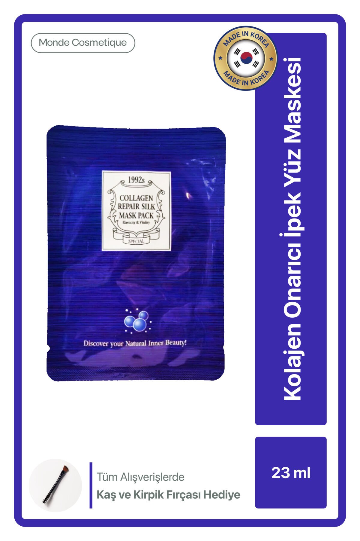 Kolajen Onarıcı İpek Yüz Maskesi, nemini kaybetmiş, mat ve yorgun görünen ciltler için özel olarak geliştirilmiştir.; İçeriğindeki hidrolize kolajen, cildin elastikiyetini desteklemeye ve ince çizgi görünümünü azaltmaya yardımcı olur.; İpek dokulu maske yapısı, cilde tam uyum sağlayarak aktif içeriklerin daha etkili emilmesini destekler.; Düzenli kullanımda cilt daha dolgun, canlı ve sağlıklı bir görünüme kavuşur.; Kolajen destekli ipek maske yapısı sayesinde cildi yoğun şekilde nemlendirir, onarmaya yardımcı olur ve daha dolgun, pürüzsüz bir görünüm kazandırır.; 3’lü ekonomik paket ile düzenli bakım imkânı sunar.